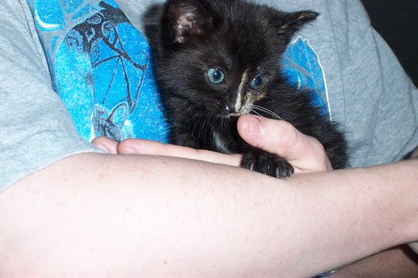 Good luck raising a kitten. I got my first cat (Sage) as an abandoned six-week-old. Even at that age she became very attached. I eventually got her a "brother," Ky, and the two play and fight just like siblings. She's still very much "my" cat though, so I can only imagine how loyal and loving this little one will be towards you when it grows up. You'll be mom for life.