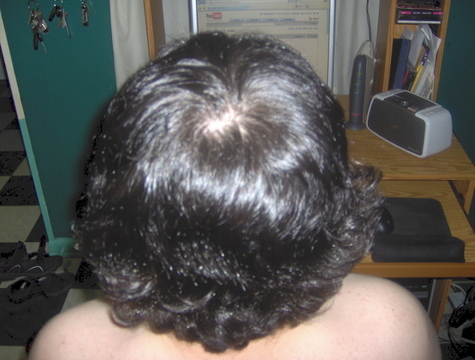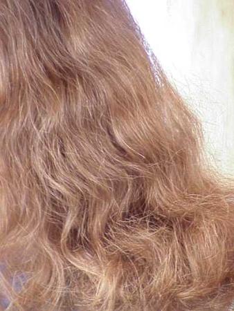I wish I was similarly blessed, here is the best picture I could come up with. I had damaged my hair a year ago due to overuse of straightening irons (was using them nealy daily from early 2005 to early September 2006), which I had not touched since last September. My hair is slowly recovering from that damage, and this picture is a close up taken early this month.