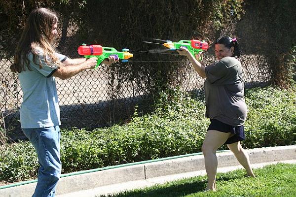 Hey Tommy definately some fun pics there with the water rifles and all.You look like your right at home taking aim at your co workers.LOL. As for your hair the trim came out better than I thought it would and its not really all that short anyway.At least it'll be more manageable in the beamer with the top down.Other than that you look fantastic and do stay in touch with us here on the board.Mark