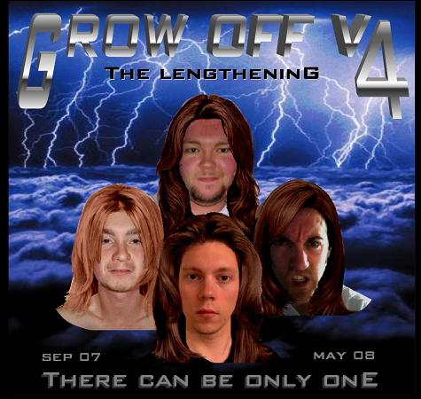 It just started as a bet between my friend kevin and I, to see who could grow the most hair by May 08, but now there are 4 of us! It's a bit more difficult to come up with a prize now. But, I think I have an idea. How about we all go out drinking, or to dinner (winner's choice) and each of us brings a guest. (8 people total) the 3 losers have to pay all expenses for the winner and his guest. In addition, the 3 losers must also wear a bunch of girly stuff in their hair for the night. For example, ribbons, bows, barrettes, braids, etc. Lose a little money, and a little dignity. what do you think?