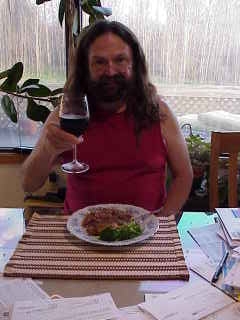 Antesse, Your recipe sounds yummy and very similar to my Chicken Cacciatore! I substitute black greek calamata olives for the peppers and red wine instead of balsamic vinegar. Served over whole wheat shells or penne. To get it back on topic here's a photo of me enjoying the said concoction with broccoli, red wine and longhair flowing!
