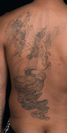 I wish that I'd've had Mr. Gupta do it. Most of all the colour has lifted and the lines faded. Oh well. BTW, he duzzint do touch-ups, just his own stuff. And I must concur with ya, Tristan, his work's truly unreal.
