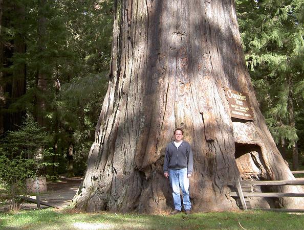 Here is my brother from IL standing in front of one of the famous drive-through trees along far No. California's, "Avenue of the Giants"... Granted, the van we rented for the trip was quite a tight squeeze making it through the part that was cut out for driving through; but, hey, we did indeed drive through it!