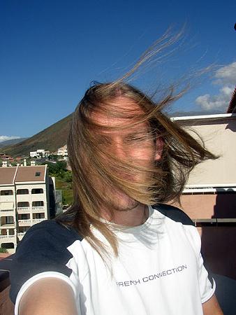 I have to admit that, especially when my hair was first growing long, I "experimented" with a lot of different styles before stepping outdoors for the day, --- only to have it ruined less than a block's walk later... Now I have a different view on this: I have decided that I've been blind to missing out on a fabulous hair-stylist that has been around all along, --- I just didn't value his sense of aesthetics at first; but now "have seen the light", and feel he's really the most creative hair stylist around. His name? "The Wind!"