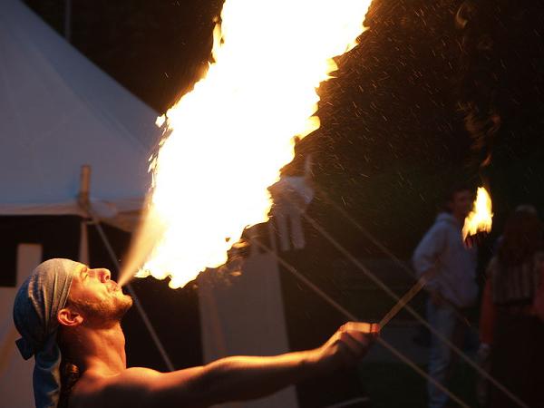 Fantastic! I have some friends who do that, but so far I've stuck to fire spinner (staff and a little poi), and flaming torches for juggling. Perhaps someday...