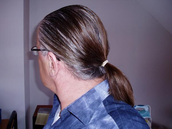 Anyway, today for the first time I went to work with my hair in pony tail (see picture). I've been waiting until it got to a reasonable length and your encouragement has been greatly appreciated.