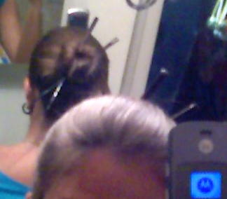 my hair thoroughly. I then put on a silicone (not latex) rubber cap on my head, pulling it over my forehead and ears on both sides. Then I roll my ponytail tightly around a finger, and tuck the rolled up ponytail up under the back of my head and the back of