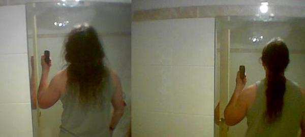 2. I put my hair into a ponytail *immediately after* taking the hair out shot.