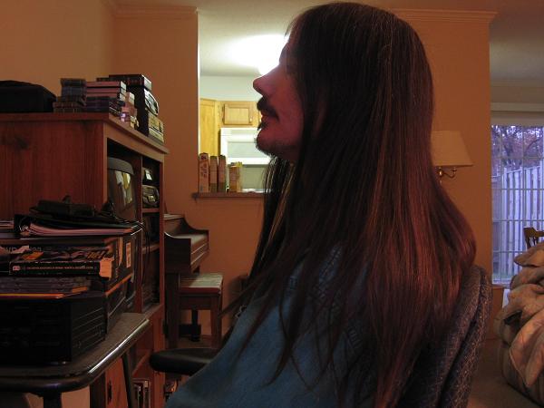 Wow thanks for all the compliments John, you sure make me feel special. I am glad you (and Mark also) liked this pic. I really liked the strong light in the center and the way the soft secondary light lit my hair from the back. I was just playing around with the lighting and I didn't expect it to come out that way. I am no photographer I just used the auto timer on the camera and I wasn't really trying to get anything other than a half decent hair picture. If I were interested in composition I suppose I would have to take the picture somewhere other than in my messy computer area :)