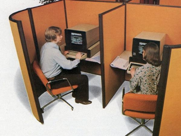 I am including an extract from an ad for Plato Workstations dating from around 1978 showing a realistic view of an office setting from that time.