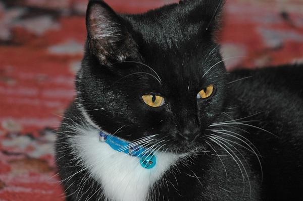 Well as a 4 week old kitten (when I first took him in) he was all head and big ears - so Gizmo was an obvious choice for a name. His latest craze is stealing my hair bands and playing with them all night until he loses them under the fridge.