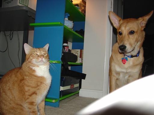 Cute kitty! Here is one of one of my cats Ishmish and the dog Scooby.