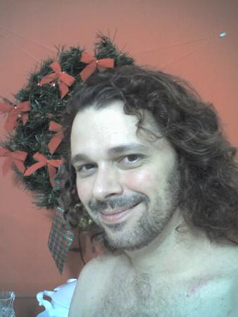 Hi Walter and a Merry Christmas to you as well:) The pic of you is great but at first glance I thought those red bows were in your hair!LOL. Then after a second look I realized there was a wreath behind you.Anyway you have fantastic hair and the new year should bring more outstanding length.Have a happy!Mark