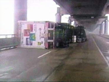 Here is an image of an overturned Safeway truck. It takes hurricane speed winds to do this.