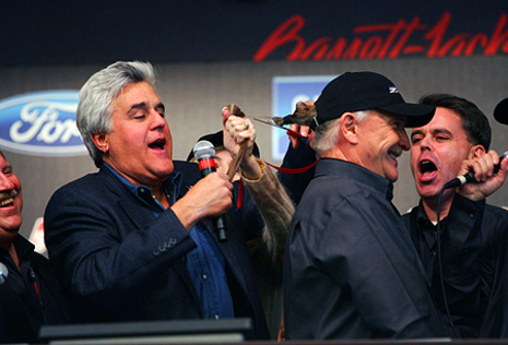 Background info: Dave has more money than God, and is HUGE on giving to charities. Dave purposely upped his own bid to $1M, after he found out that ALL the money for the car was going to United Way. After he pledged $1M, he passed scissors to Jay Leno, saying he wanted the auction company to throw in GaryÂ’s ponytail for the charity Locks of Love. Gary happily agreed. Jay hacked it off, and Dave then threw in an extra $10K cash to the Locks of Love charity, too.