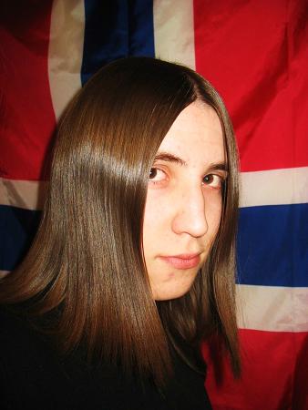 That is simply gorgeous hair. I like the Norwegian flag backdrop, too. Nice creativity. Congrats on the tail, and keep it growing, Hegg. =)