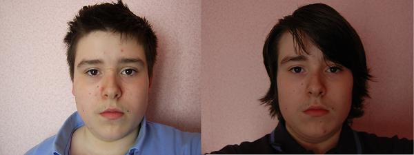 Interesting how you have the exact same pose in both pictures. You look much older with your longer hair. It's really starting to show some good length!