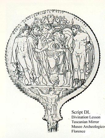 The Etruscan mirror above shows Mars (Mavors) on the right, maybe Apollo (Aplu) on the left. (Hope no one is offended at Mars in just a cape and boots!) Also, a good many of the Etruscan tomb paintings at Tarquinia etc. show paintings of guys with long hair.