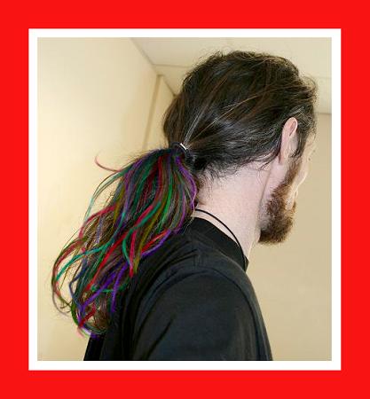 Nice tail, Dave! As for the ponytail bands, I'm not how much of a do-it-your-self kinda guy you are, but you might be able to make your own. You could just sew some colorful fabric around a regular band.