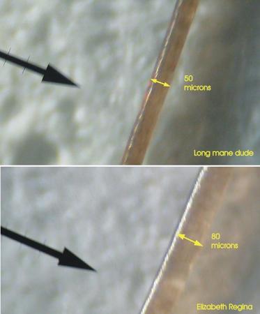 Hi Elizabeth, and Long Mane Dude. I have measured the diameter of your hair strands.