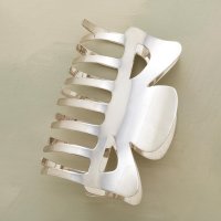 I hardly ever tie my hair back. I have a clamp (see pic -- mine isn't solid silver!) which I use when I'm shaving or brushing my teeth (otherwise I get hair in my mouth, it's too smooth to stay behind my back). Sometimes I use it if I'm washing dishes, or other household chores. I don't put the clamp in properly, I just clip my hair into a ponytail.