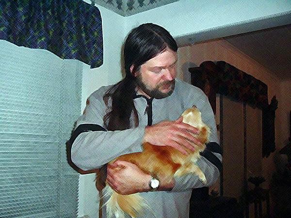 No cats here, just my 2 Chihuahuas. The painting is of myself and my "longhaired" Chihuahua: "Heidi."