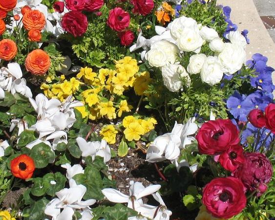All the natural stuff is blooming, but these plantings in front of Hillsdale Mall take the prize. And the goofball in me can't help but think that the wind is saying, "hey, mallflowers, wanna dance?".