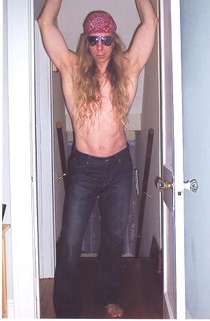Wanna be rock star. The Brett Michaels Hair Band look.