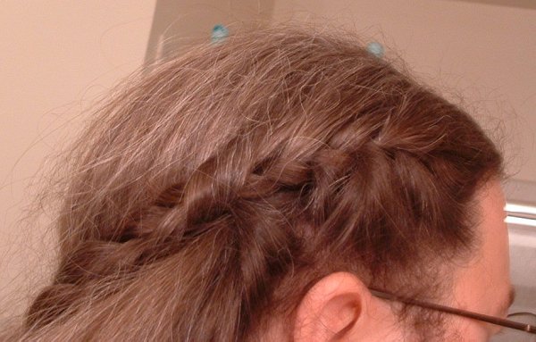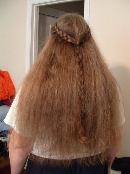 A friend helped me out by braiding my hair for me. Included is a shot of the conjoined braid she did, which I think turned out quite nicely