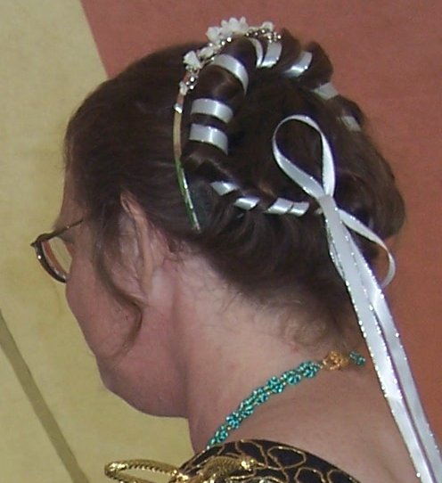 Thanks, Walter. Actually, hers was done in a medieval style called "hair-taping", here's a view of what it looks like: