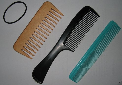 On the includes picture you see my comb I used in the first 8 months (the green one). It was harder and harder to get it through my hair without breaking it, so I bought a wide tooth comb (the black one). I wasn't satisfied with it, it was a comb with two parts and it hurt on my head so I figured it couldn't be good for my hair either, although it was better then my old one.