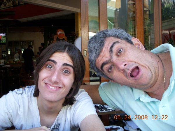 Me and my father at the grill trying to imitate Mr.Bins's legendary facial expression-it looked terrible XD.