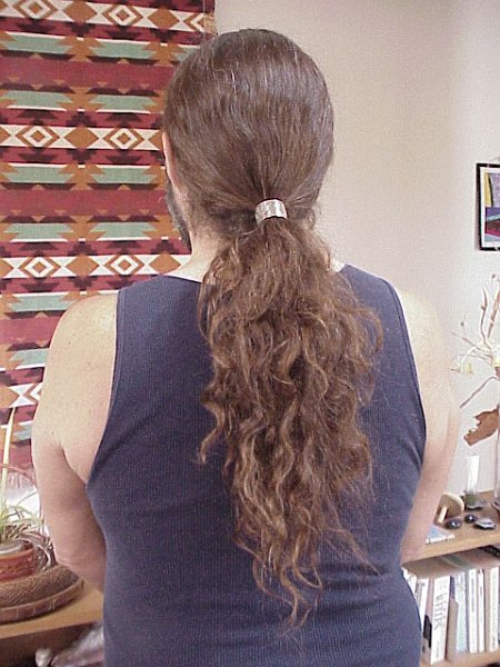 I prefer to wear my hair down most of the time but tail it most always when I'm playing a gig. Also, when on my motorcycle. I hate to spend a lot of time trying to get the snarls out of it!