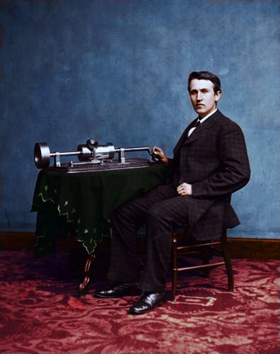 Perhaps this is only a fluke, but the photo to my eyes looks to have been altered. I am basing this upon my personal knowledge and experience of having abilities to do many things with photos such as the one you see above of Thomas Edison in 1877 seated beside the invention of his first phonograph. The original photo of course was in B+W. There were many steps involved in the process of making this into a colourization a recreating an antique photo is the most difficult of all. When done on a modern B+W one cannot tell if the photo was shot in colour or not...........but that came with 2 years of practice and tons of experiments on my part. I also have the ability to modify to an extent facial features as well has enhance aspects of the original photos.