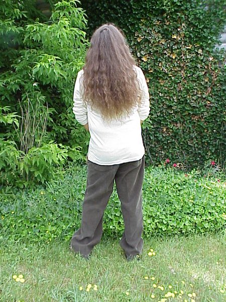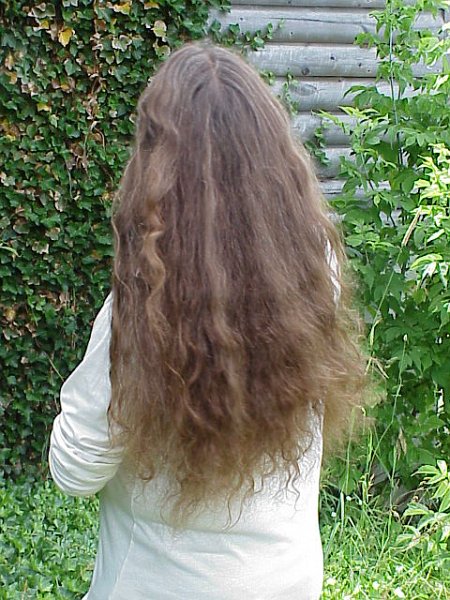 Your hair has certainly lightened since we first met eight years ago! I wonder if it's not a natural change, though, or the effect of getting more graying hairs in the mix. Taking hair out of the sun usually does not darken it, and I see several years of Michigan's summer-winter cycles as your mane cascades down your back. What most longhairs get from the sun is a gradual lightening from roots to tips, often not noticeable until you hold your tips up by the hair coming out of the top of your head. Then the color shift will be very obvious.