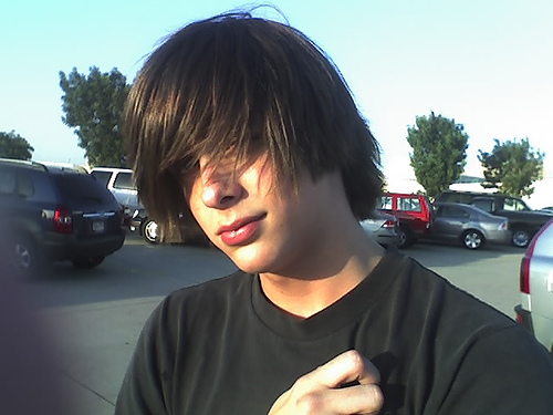 My mom is (kind of) okay with letting my hair grow out but she wants me to cut the front part of my hair so its not in my eyes (when its wet I part it to the side and naturally it moves itself up thanks to the waves so I come it out front)