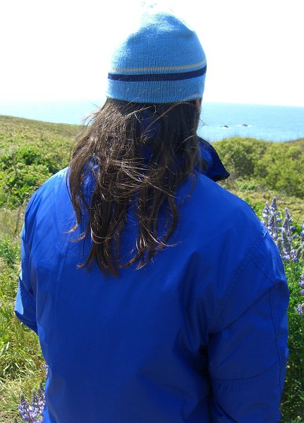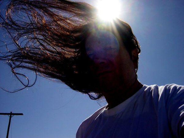 Hey Brett, here's the only windy pic of the back of me taken in late April so I have at least 2.5 inches of further growth...this is the best I could do. That was a cool pic of you...well done. Now that we are entering storm season here in nothern CA I will experiment in the wind.