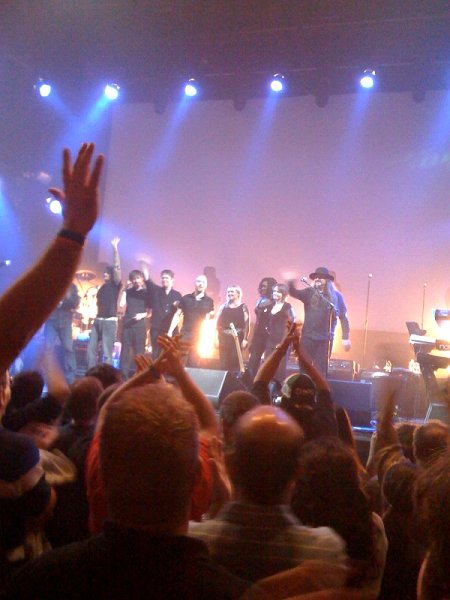 Last night I went into the Big City,that is NYC of course,and took in a show at the famous Roseland Ballroom.The feature last night was the band "Aussie Floyd"which does covers of Pink Floyd music they've recorded over the many years that band existed.This show was mainly based on the album "The Wall".Anyway as usual I always look to see if there are many long hairs left that go to clubs and thankfully there are still some but not nearly the way it was in the 1980s.However I did grab this pic using my iphone after the show ended as the band thanked the audience.You will notice on the far right the guy wearing the hat.He played the keys and I was right in front of him during the show and his hair was absolutely fabulous.In fact he reminded me of Walter White Tail(WWT)with the hat and all:)Anyway the show was great and just thought I'd share a couple pics from the event.Hope you all are having a fantastic weekend:)