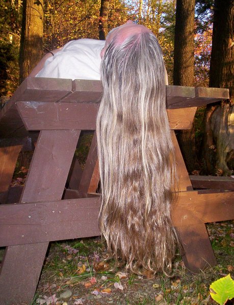 Of course there has to be a "hair hangin' over the edge of a picnic table" photo.