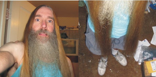 I just washed my hair and beard and took two photos showing the length of both. My hair is about the same length as it has been for the last five years. My beard has reached about full length now, too. The longest hairs are a foot long.
