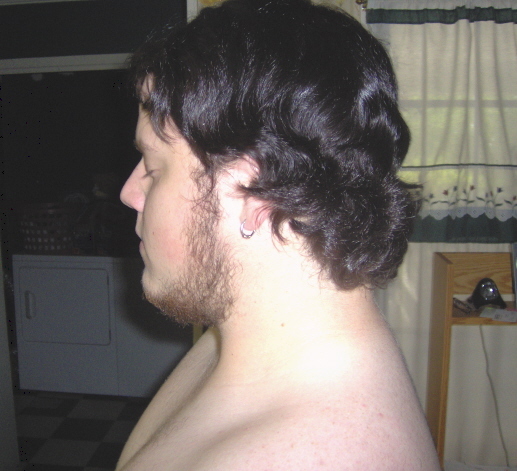 Well, it's been 6 months now, and 1 month since my "Maintenance cut." Next week is Thanksgiving, and I can see my mom armed with brush and hairdryer, ready to attack my hair. As you can see, this is sort of an exaggeration of my hair - It's not all droopy over my forehead like that, but it wants to be. It is long, but yet it doesn't *appear* long, because my hair strands are in the shape of some kind of odd 3-D question marks. But I have so much trouble keeping it from frizzing all over and sticking up. It's so bad that I have to wear my hat AT work now sometimes. Also, my one side likes to curl out because that's the side I sleep on, and it always gets bent it seems. None of it is worth tying yet, which sucks. But I know I want to continue - I just need to know how to survive the upcoming holiday gatherings, without my mom giving me funny irritated looks. I bought that Garnier Fructis Sleek and Shine stuff, but I have to use a LOT of it to keep my hair in check. Also, it seems like the more I wash my hair, the more frizzy and wispy it gets. I've heard that some of you with long hair only wash it 1-2 times per week, but when I tell my friends that, they all think that's sick and disgusting. Soooooo.... what should I do?