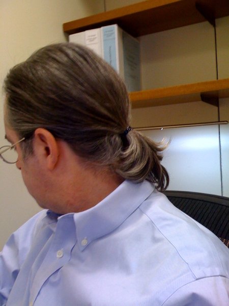 I am certainly glad to hear you are in a conservative career, I feel there are a lot of "closet longhairs" out there who just don't dare do it. I can't imagine how many doctors and lawyers would suddenly sprout a ponytail if it ever become ok to do so. I consider you courageous.