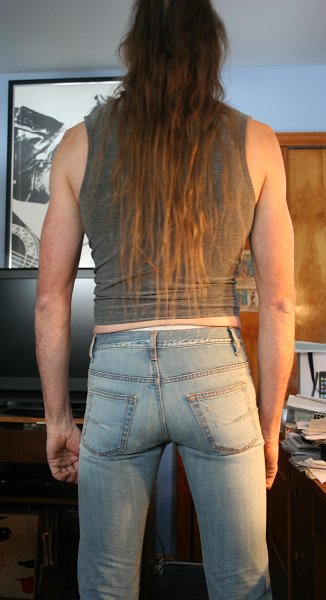 I am posting that profile image, cropped a bit, with a reference mark on it to show where your hair is right now. Save it for future reference. In 6 months take another similar profile image and wearing the same shorts to compare. As you can see, your hair now reaches the bottom 1/3 of your belt loop. It should be interesting to compare the 2 by early summer. Good luck.