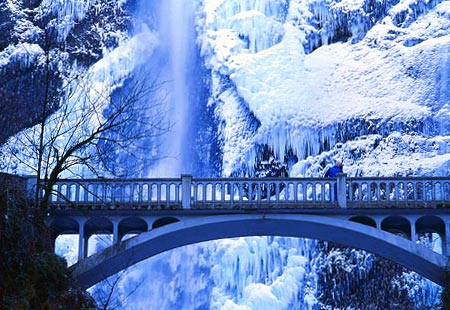 Beautiful photo of Multnomah Falls in the Winter. That 50+ long mile area along the Columbia River Gorge ALWAYS has it bad every Winter and the main highway becomes blocked.