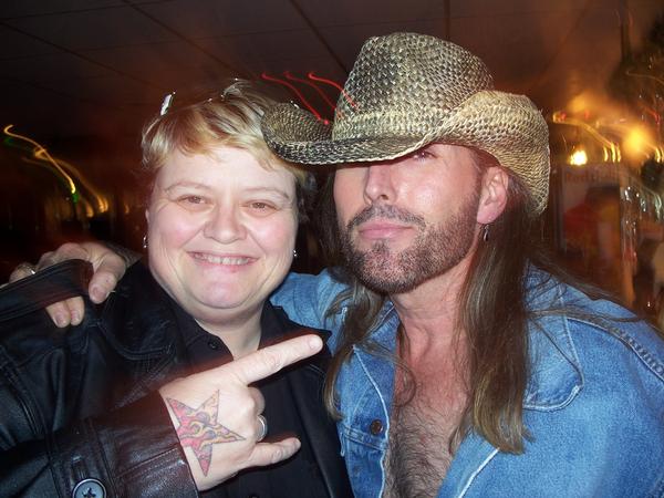 Very cool pic of you and your friend.Its funny to see the guy with longer hair than the gal!Hey,its about time:)I'm sure you had fun at the club based on the pic.Thanks for sharing my friend.