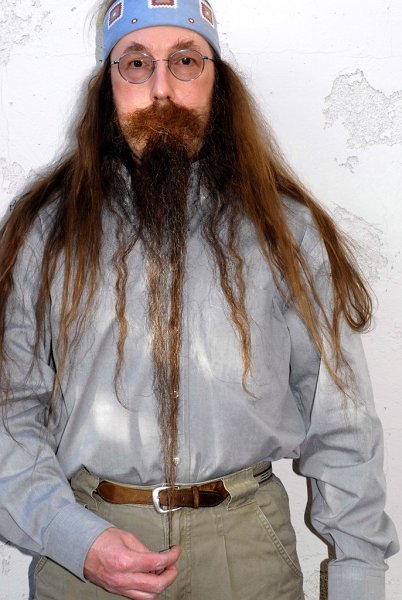 Hi everyone - here is my latest update photo (taken yesterday). Many more photos of my face fur have been posted on the BCBB. The mane hasn't been trimmed in over ten years and is gradually getting shorter with age. However, the face fur is getting longer with age:) The goatee is at 48 months, the chops are at 30 months, and the 'stache is at 18 months.