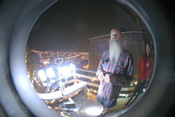 This is an image of me from the 2008 annual longhair party in SF. I provided the outdoor lighting of the patio area using bright white LEDs. I built that lighting rig from scratch.