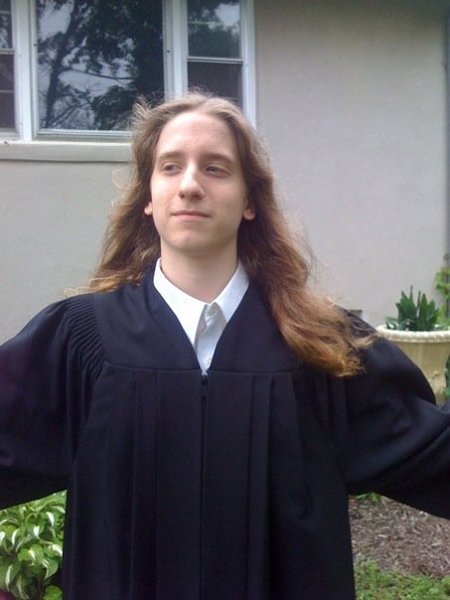 Hi DJ,awesome pic of you at graduation letting your hair fly free:)That's the way it it should be,wear it with pride both your hair and graduation garb.I commend you on the two year milestone and I like your ultimate goal as well.Thanks for posting your pic and please do post often my friend.Cheers