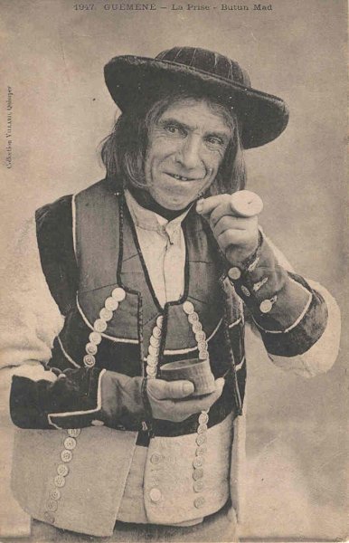 Here is a postcard from Britanny France showing a man with shoulder-length hair.
