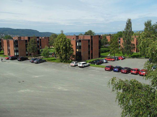 Yesterday, I began my year in Trondheim, Norway. The journey was long but fine. I'm now almost installed in my new appartment, which I share with 2 or 3 students. It seems that there's someone there, but I didn't see him yet. Here is the view of my campus, from the kitchen (I'm on the 6th floor of the building)